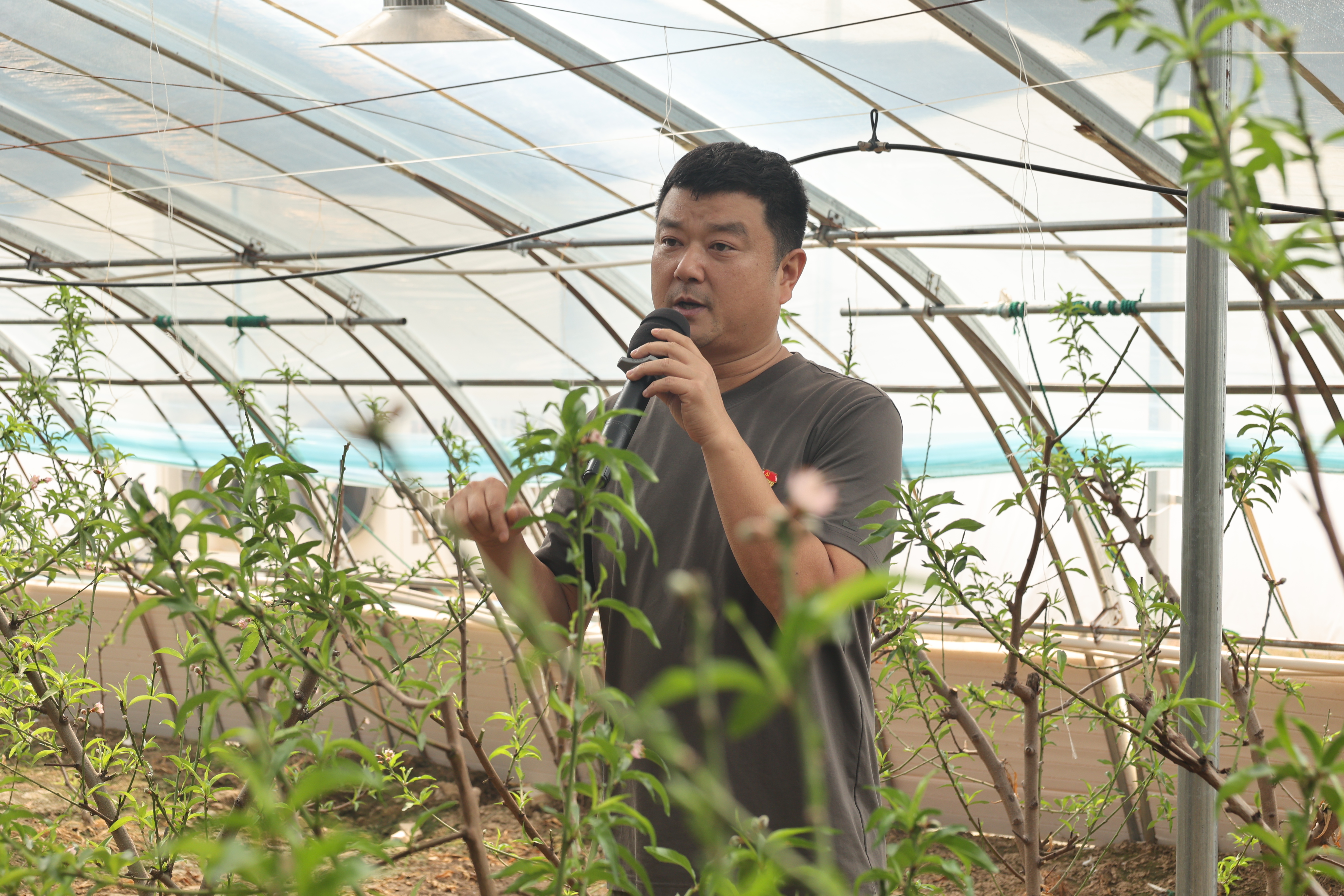在四季百桃園,38號棚里的桃樹已進入開花階段,40號棚里的桃樹剛剛結束休眠期進入發(fā)芽階段,大家對設施黃桃種植技術及發(fā)展現(xiàn)狀、遠景進行了學習交流,了解了設施黃桃生產管理技術方面的先進經驗和做法,進一步拓寬了視野。